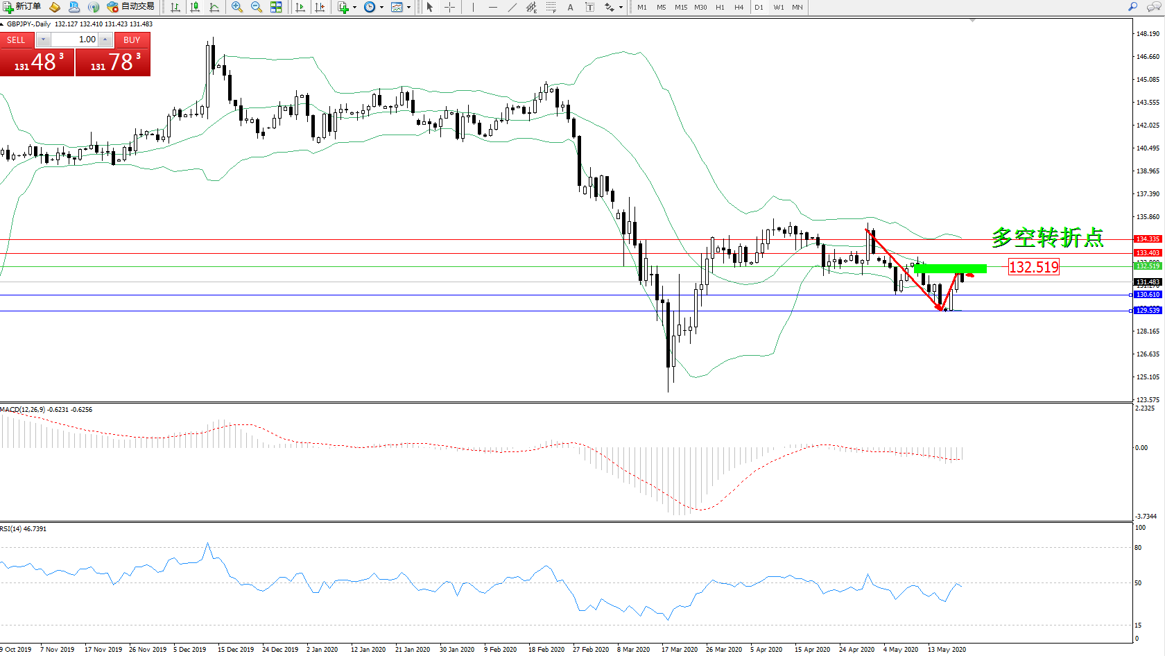 技术点评:空头动力延续布林带指标中下轨区间弱势震荡向下移动中,底部得到短期支撑开始回升,触及布林带指标中轨附近开始震荡,布林带指标呈张口走势后又开始收口,关注中轨附近节点,MACD指标处于0轴线下方空头区域持续震荡平移中,RSI指标处于50均衡线下方持续震荡后缓慢上移态势;