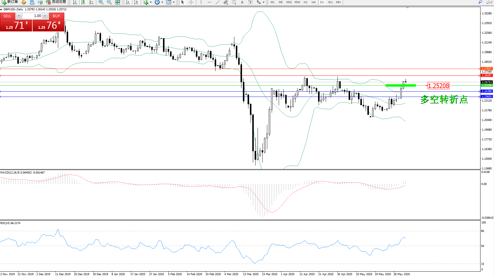 交易策略:1.25208上方看涨,目标1.265971.27537