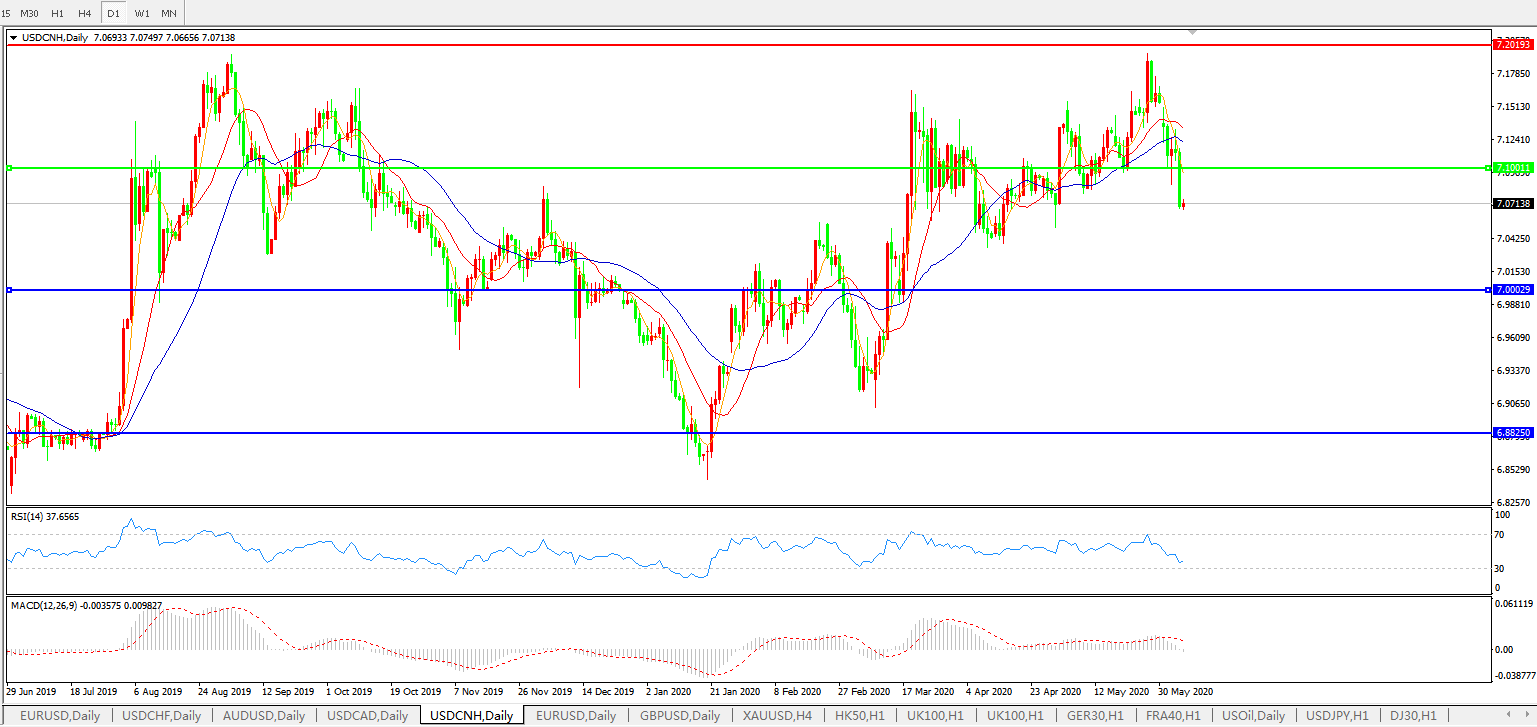 交易策略: 在7.1000之上,看涨,目标价位为7.2000,然后为7.3000。