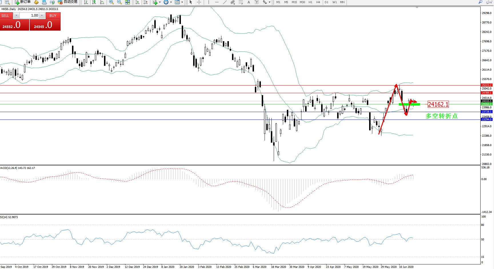 香港恒生指数618日(周四)收盘下跌16.47点,跌幅0.07%,报24464.94点;盘初急挫逾300点,随后逐渐回升,全天维持窄幅震荡。港股中兴通讯股价暴涨,具备芯片设计和开发能力,7nm芯片已经规模量产,并在全球5G规模部署中实现商用,5nm芯片则正在技术导入。京东集团在港上市首日涨3.54%。京东正式登陆港股!市值高达7300亿!港股延续近期强势,并沿上升通道挺进,但上方压力开始浮现,由于累积较大获利需求,短线大盘或需进行休整,但预计行情整固过后,港股仍将延续上行趋势,投资者可根据自身仓位适度调整持仓水平。