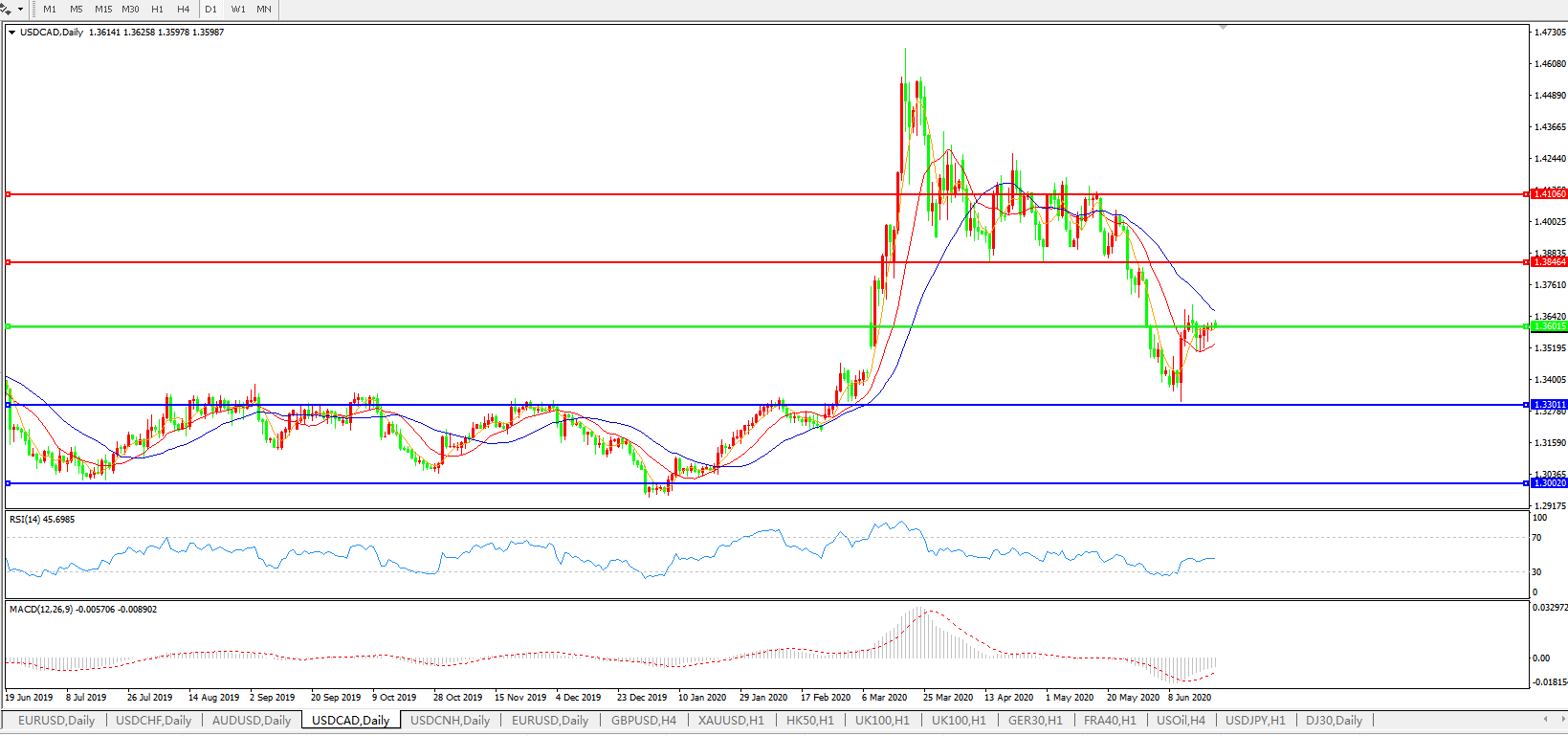 美元兑加元USDCAD 日线图: