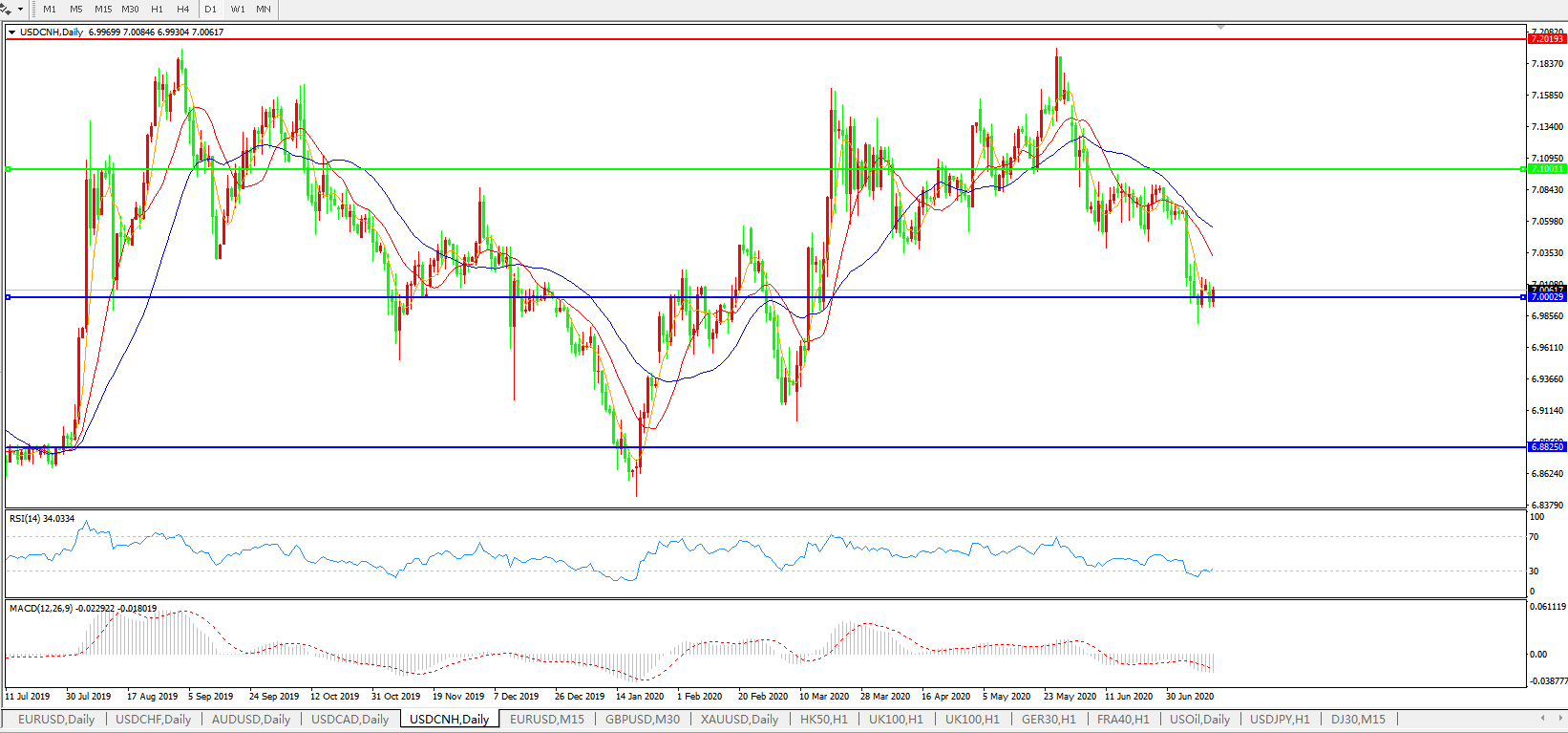 备选策略: 在7.1000之上,看涨,目标价位为7.2000,然后为7.3000。