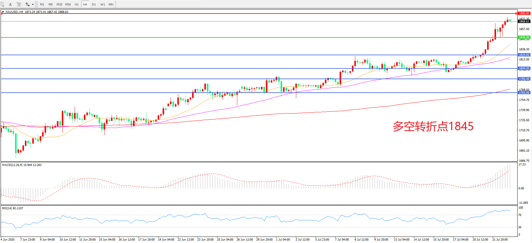 交易策略:在1845.00之上看涨,目标1880.00 1920.00