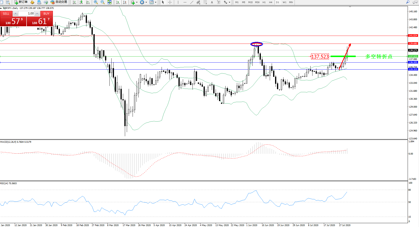 英镑兑日圆强势拉升至138.575附近,由于解除了针对疫情的限制,允许开设更多商店,英国6月份零售额再创新高。英国国家统计局周五说,零售销售较5月份增长13.9%,为1996年有记录以来的最高水平。英国的商业正在逐步复苏,此前英国政府的封锁措施导致4月份的零售销售暴跌18%。非必需品商店在6月中旬被允许重新开业,一些官员仍对经济快速反弹抱有希望。尽管如此,社交隔离措施意味着商店无法正常运营,引发了对长期复苏的担忧。