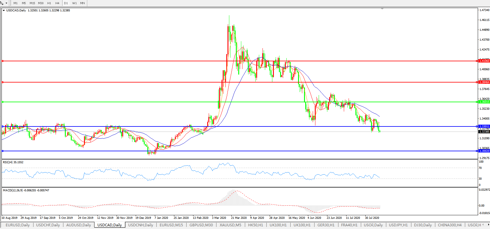 美元兑加元USDCAD    日线图: