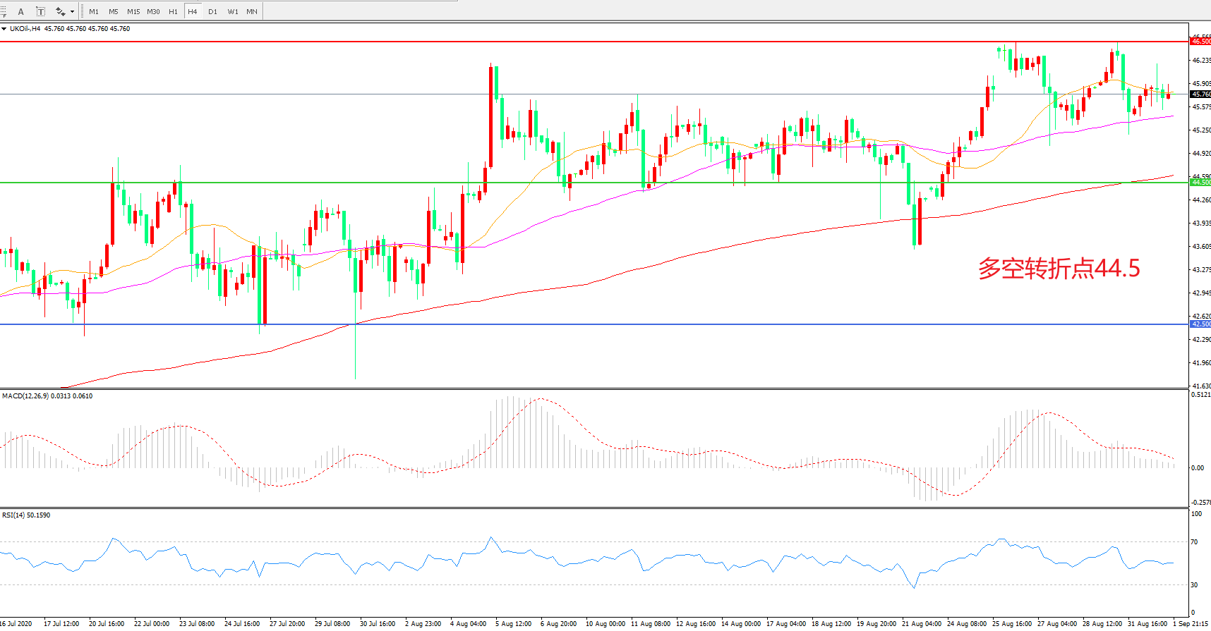多空转折点:44.50