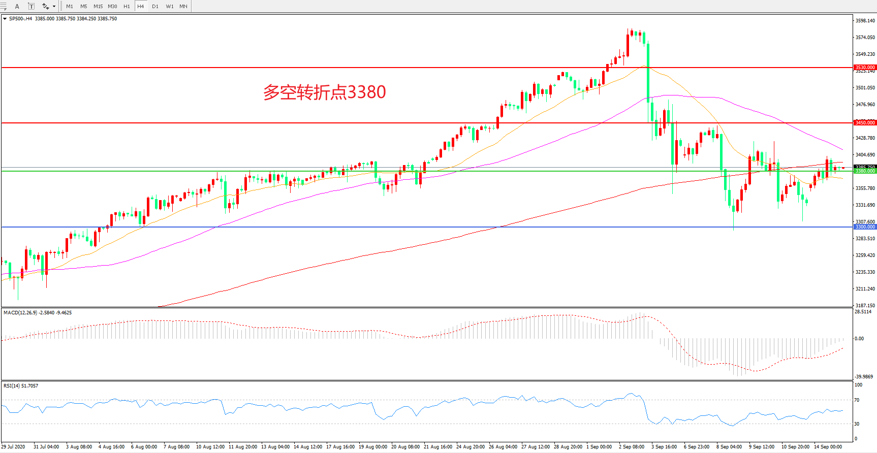 多空转折点:3380.00