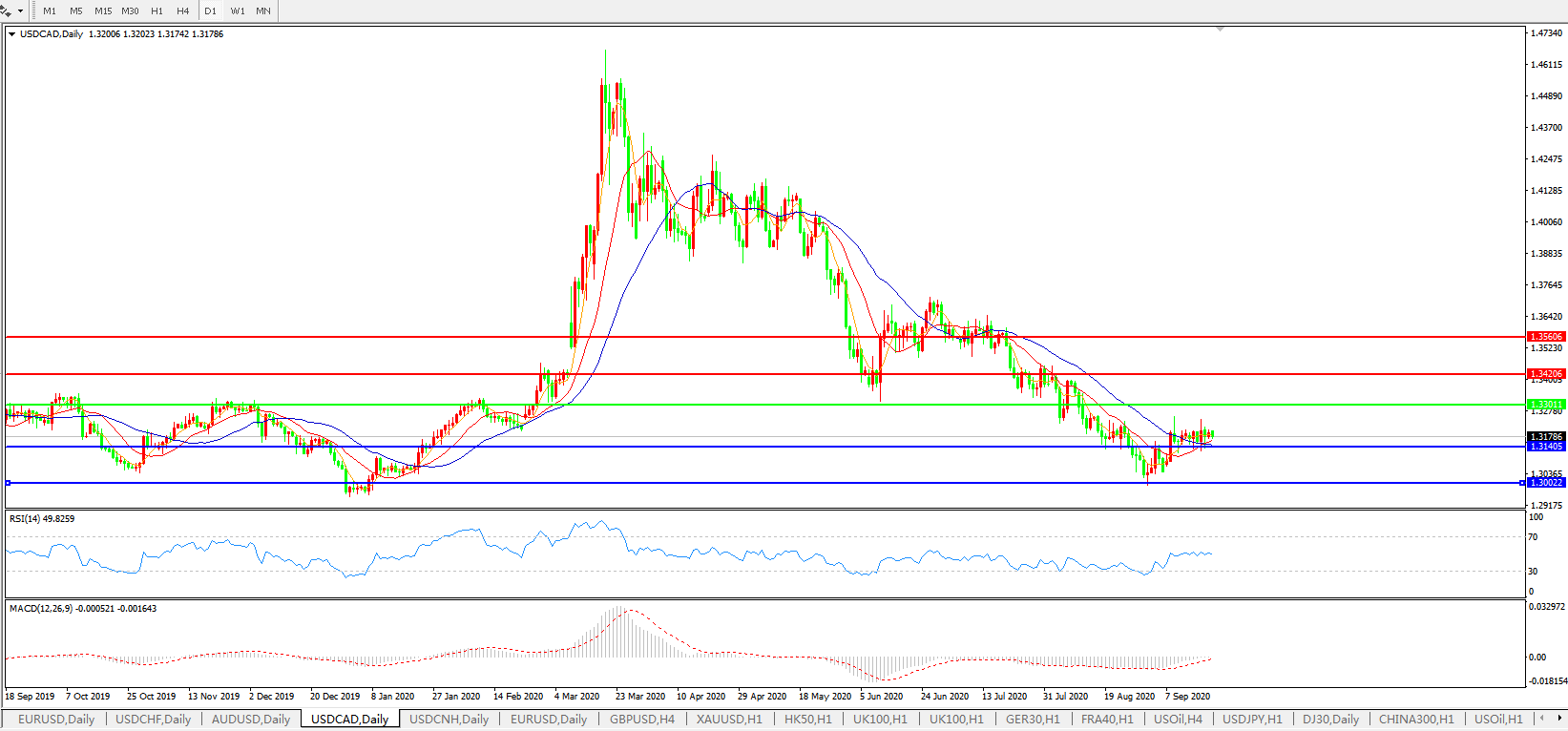 美元兑加元USDCAD 日线图: