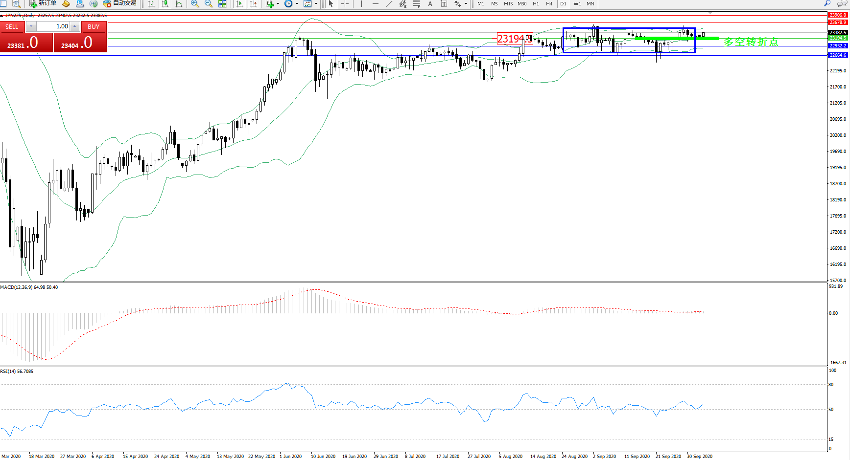 日经225指数10月5日(周一)收盘上涨264.60点,涨幅1.15%,报23294.50点。日本央行数据显示:日本第二季度的产出缺口降至-4.83%。日本产出缺口自2016年以来首次出现负值。日本央行行长黑田东彦:日本经济形势严峻,但已经开始复苏。前景的不确定性极高。日本经济可能会好转,但复苏步伐仍将保持温和。日本经济和通胀存在下行风险。日本央行的措施正在产生影响。日本财务大臣麻生太郎:经常账户显示投资收益现在更为关键。日本聚集精通金融的人很重要。政府努力使日本成为国际金融中心。东京交易所此前暂停交易背后的原因需要澄清。日本交易所正在考虑采取措施防止再次出现突发暂停交易现象。日本交易所将检查原因,加强备份系统。日本想成为国际金融中心必须避免出现突然暂停交易现象。新冠病毒将加速行业的结构变化。日本家庭资产没有得到充分利用。