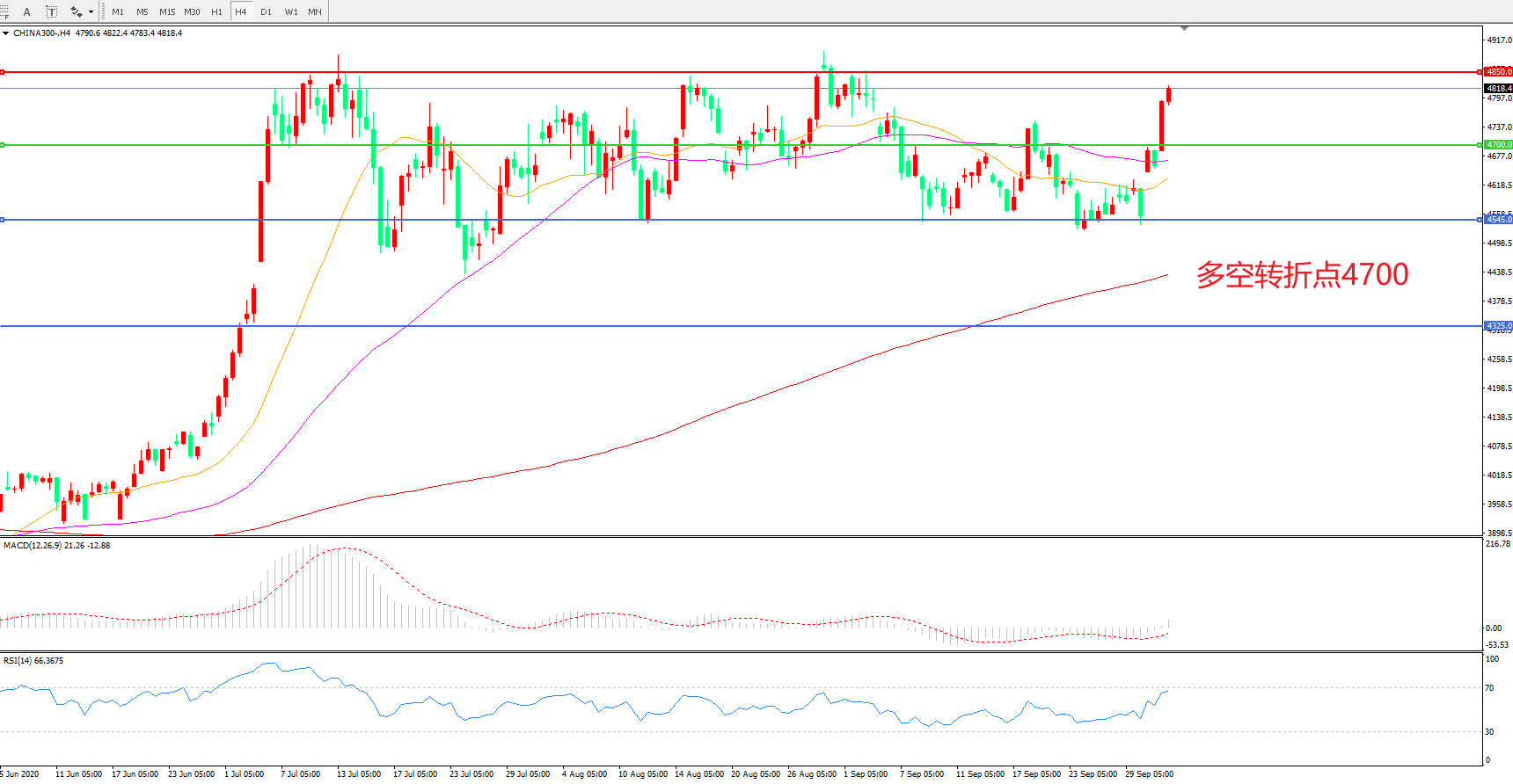 多空转折点:4700.00