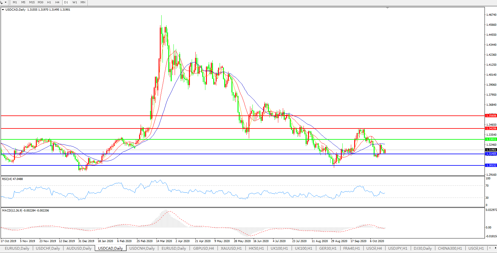 美元兑加元USDCAD 日线图: