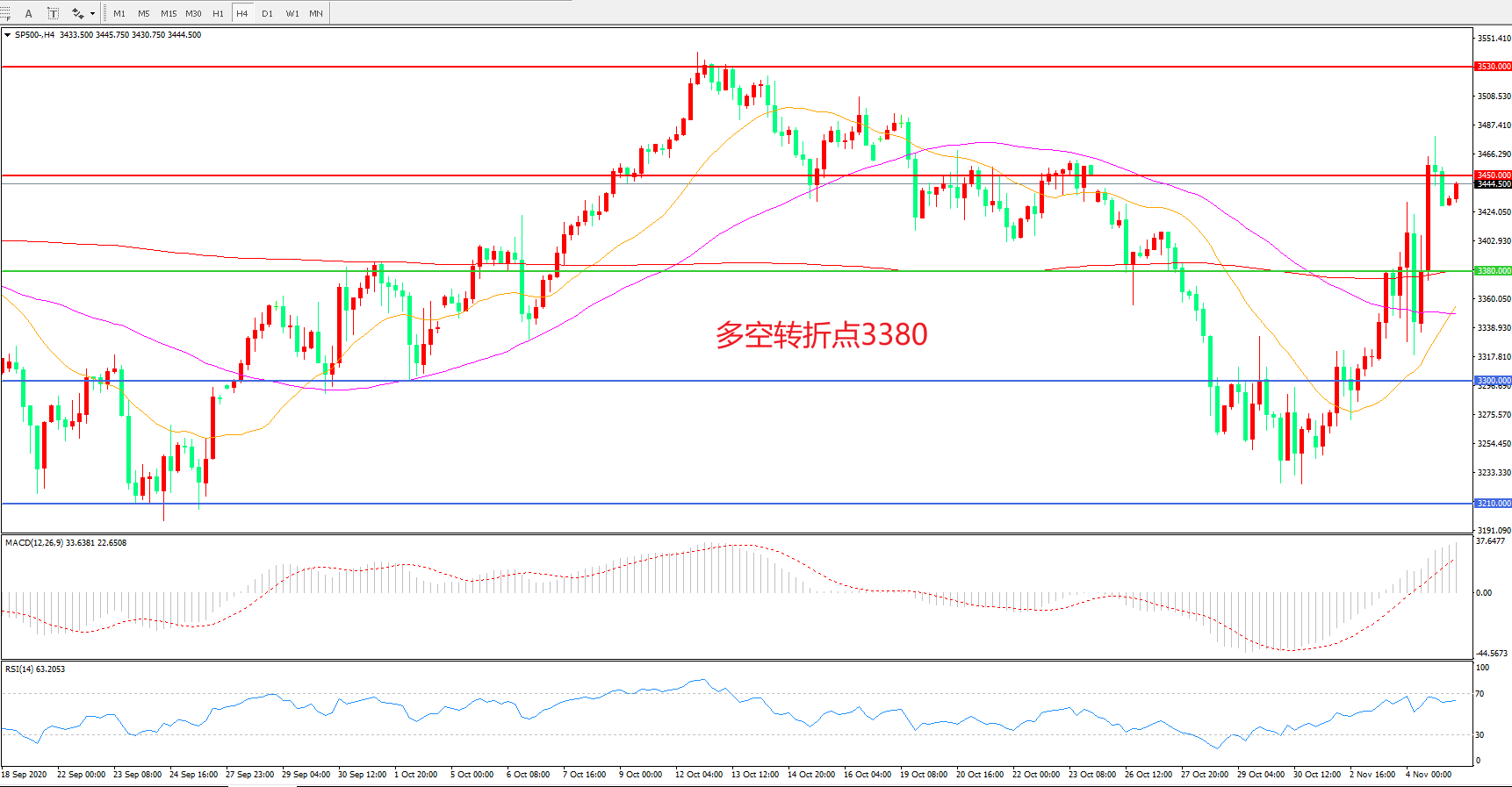 多空转折点:3380.00