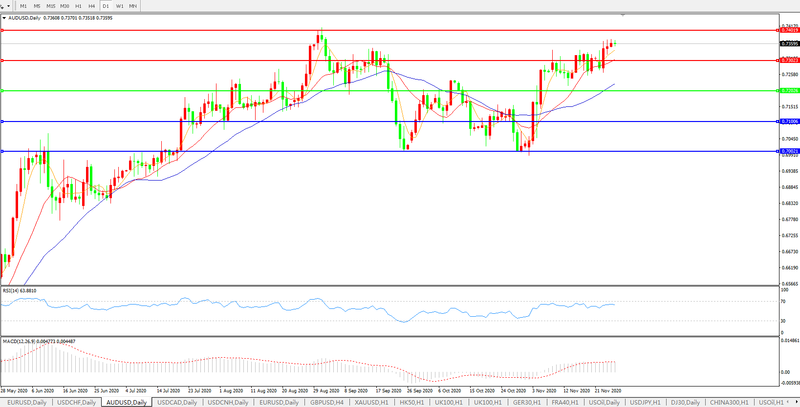 压制位:0.7300 0.7400