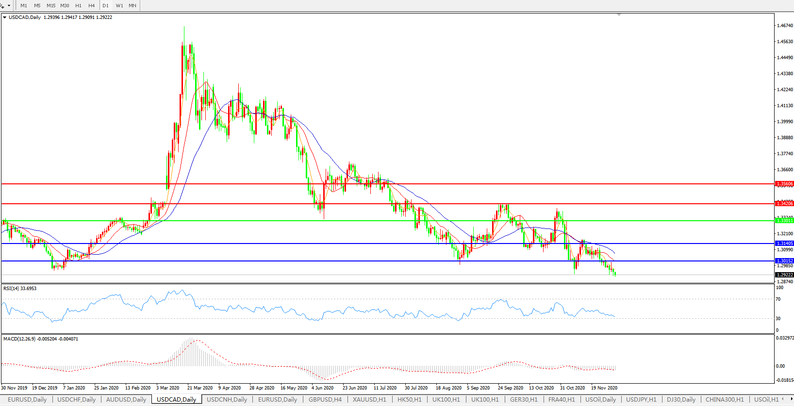 美元兑加元USDCAD 日线图: