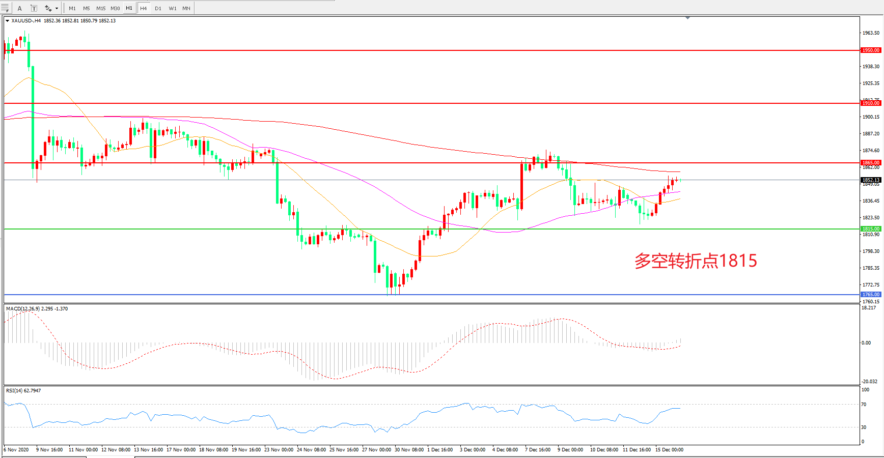多空转折点:1815.00