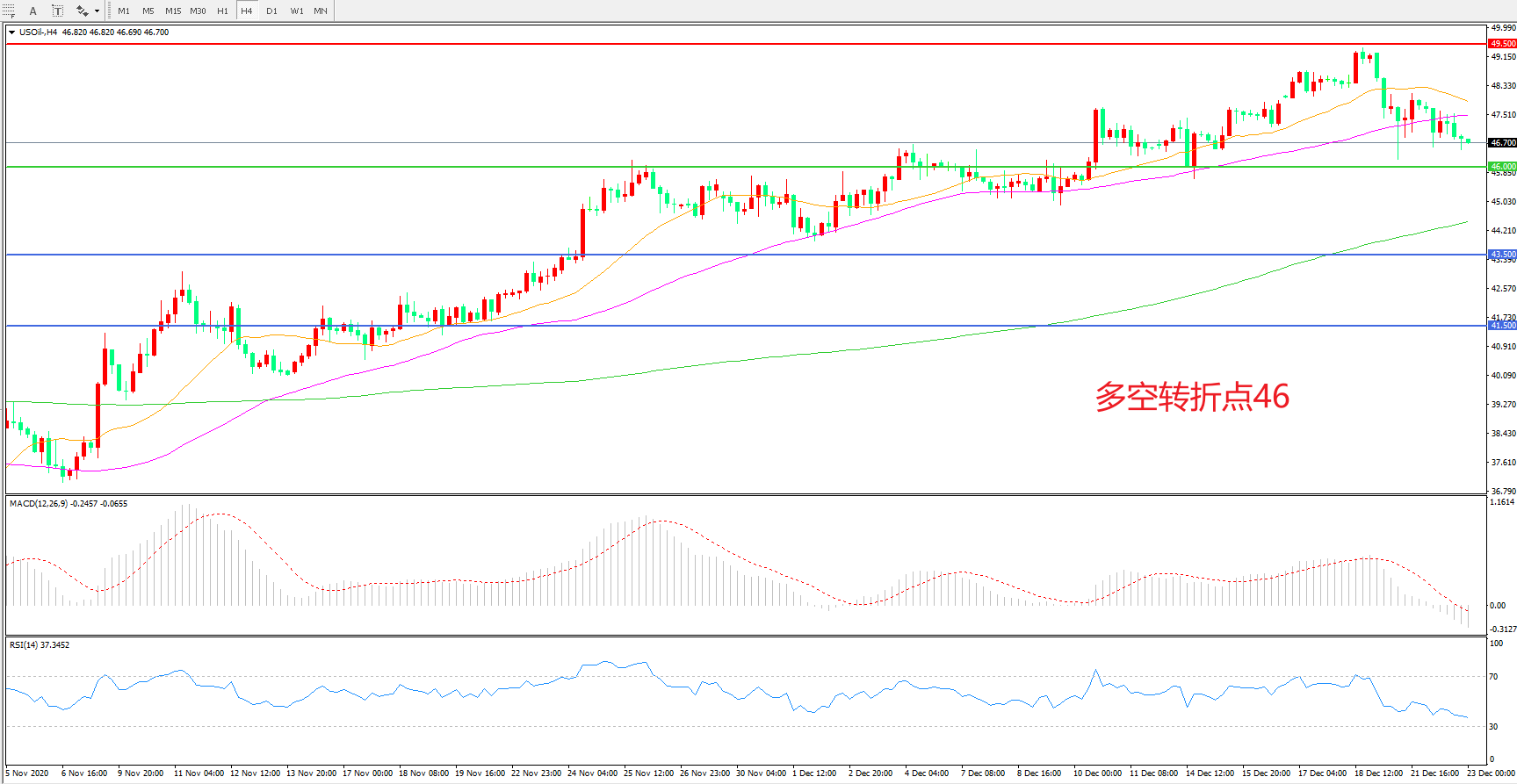 交易策略:在46.00之下看跌,目标43.50 41.50