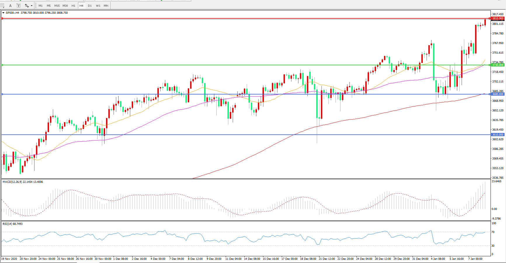 交易策略:在3730.00之上看涨,目标3810.00          3880.00