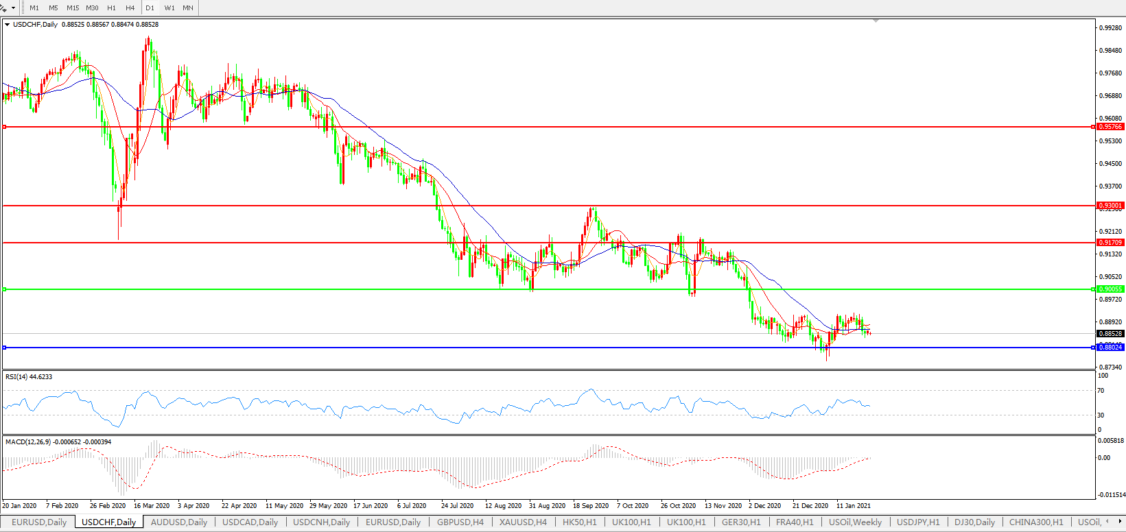 美元兑瑞郎USDCHF    日线图: