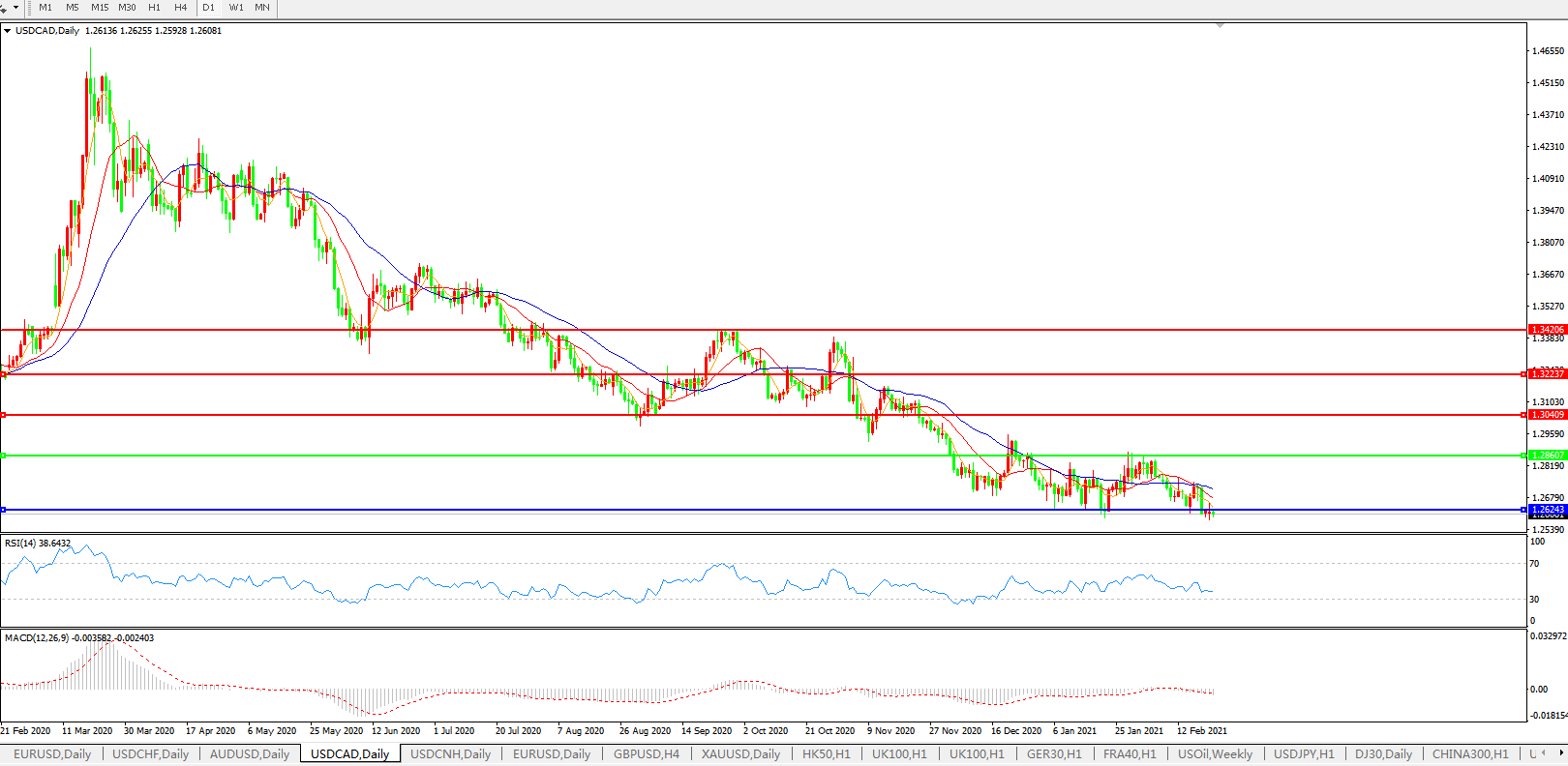 美元兑加元USDCAD    日线图: