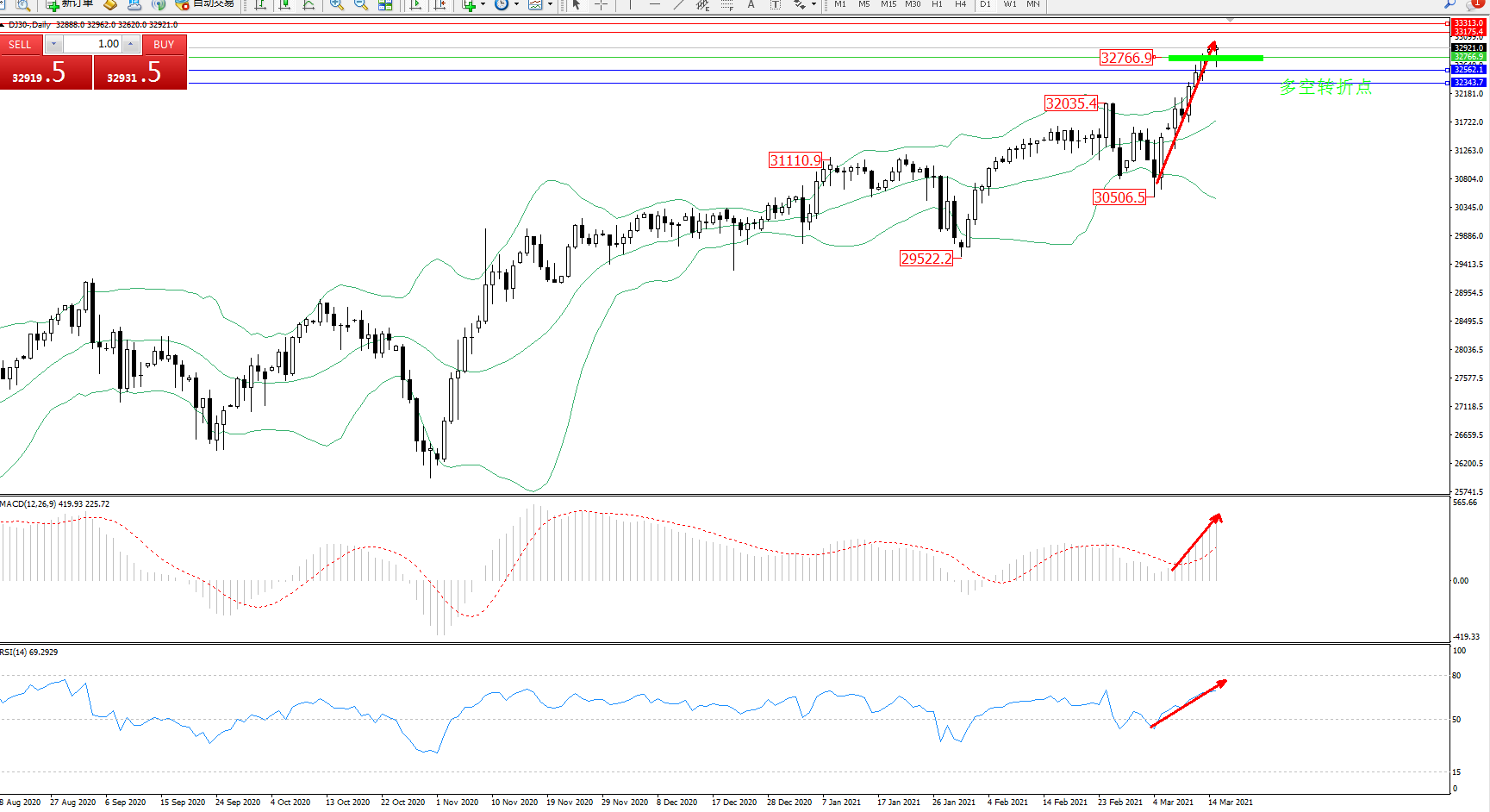 多空转折点:32766
