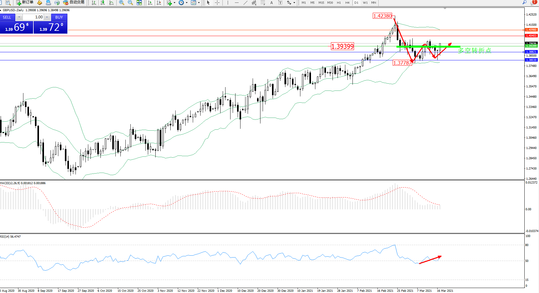 交易策略:1.39399上方看涨,目标1.40403、1.40980