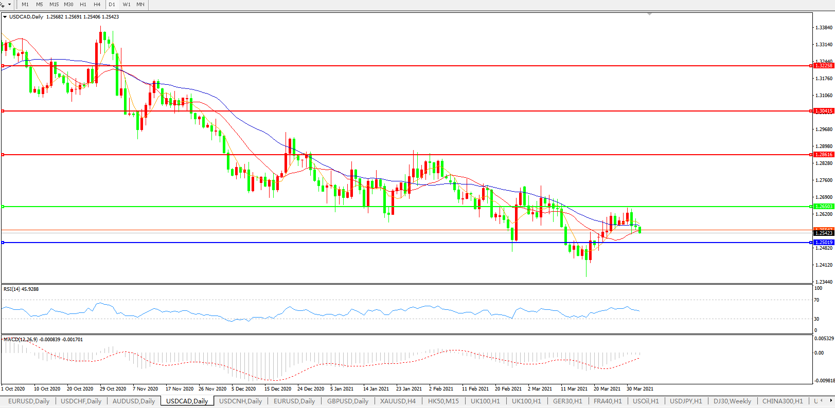 美元兑加元USDCAD    日线图: