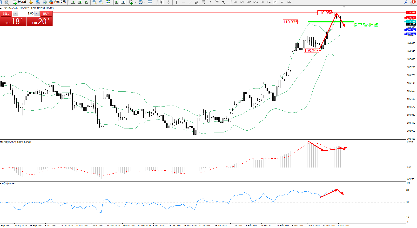 多空转折点:110.335