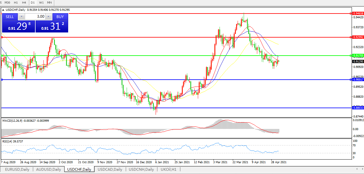 美元兑瑞郎USDCHF 日线图: