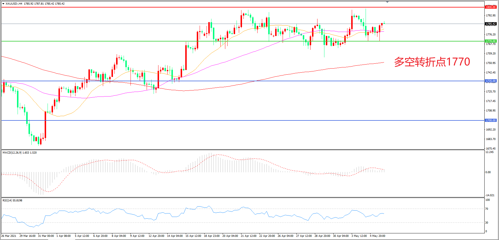 多空转折点:1770.00