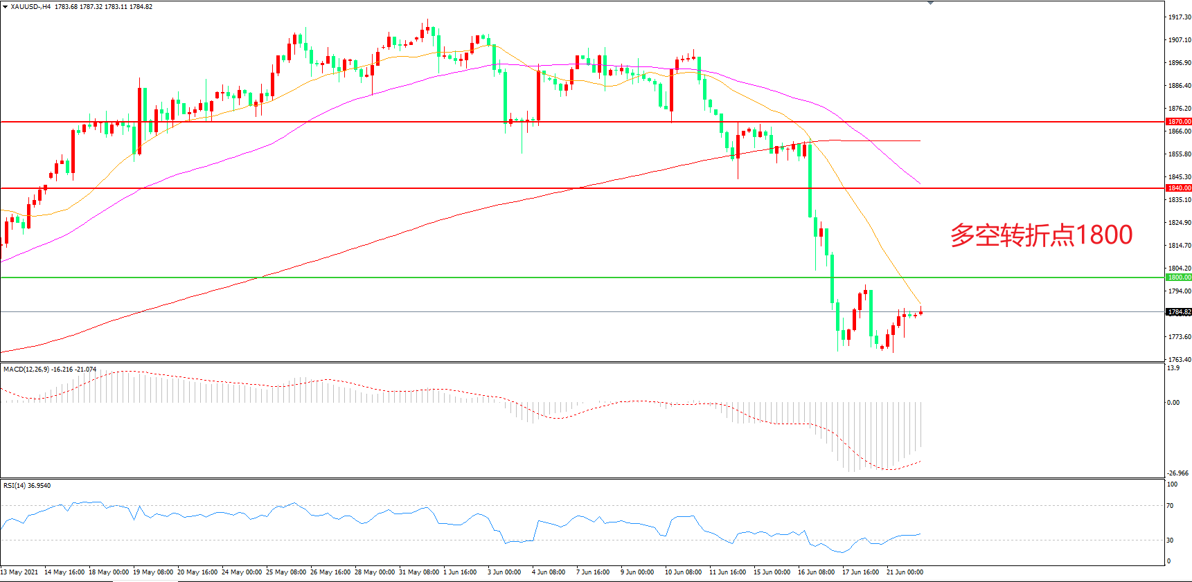 备选策略:在1800.00之上看涨,目标1840.00       1870.00