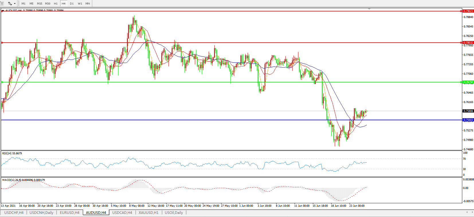 AUDUSD 4小时图: