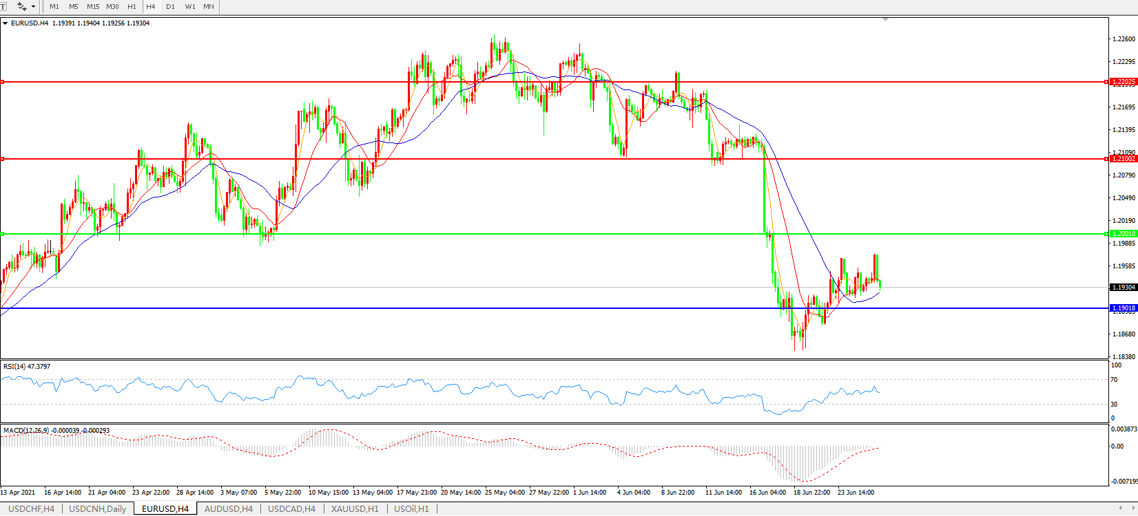 交易策略:1.2000下方看跌,目标1.1900、1.1800