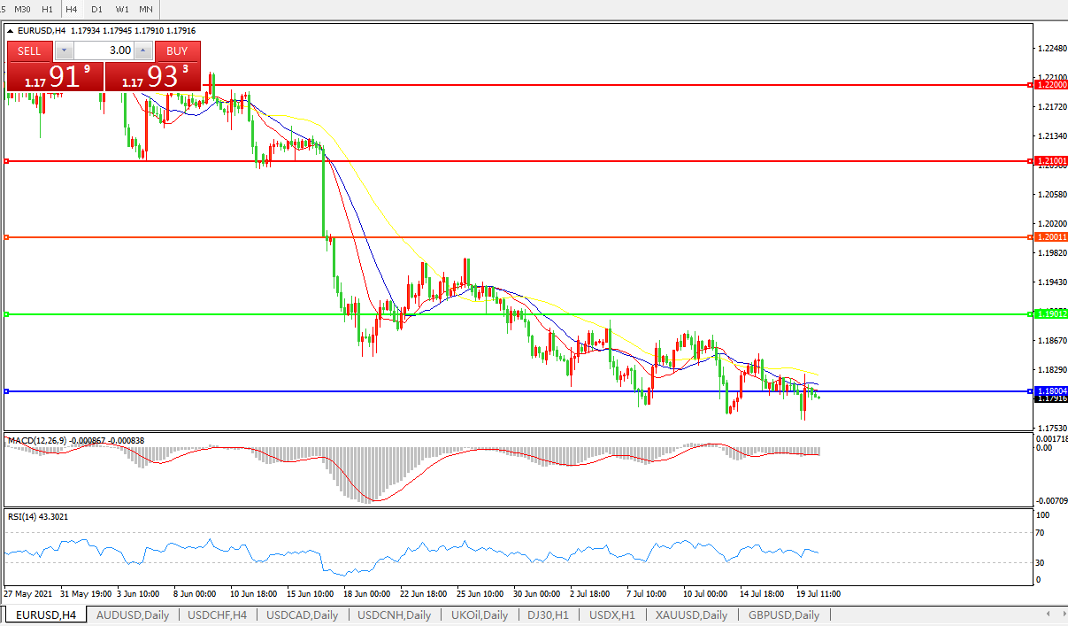 技术面简析:4小时图均线延续下行态势,汇价窄幅波动偏弱势,MACD运行于0轴下且量能0轴下微放量,RSI小幅走弱,预计短期汇价大概率将进一步下行。