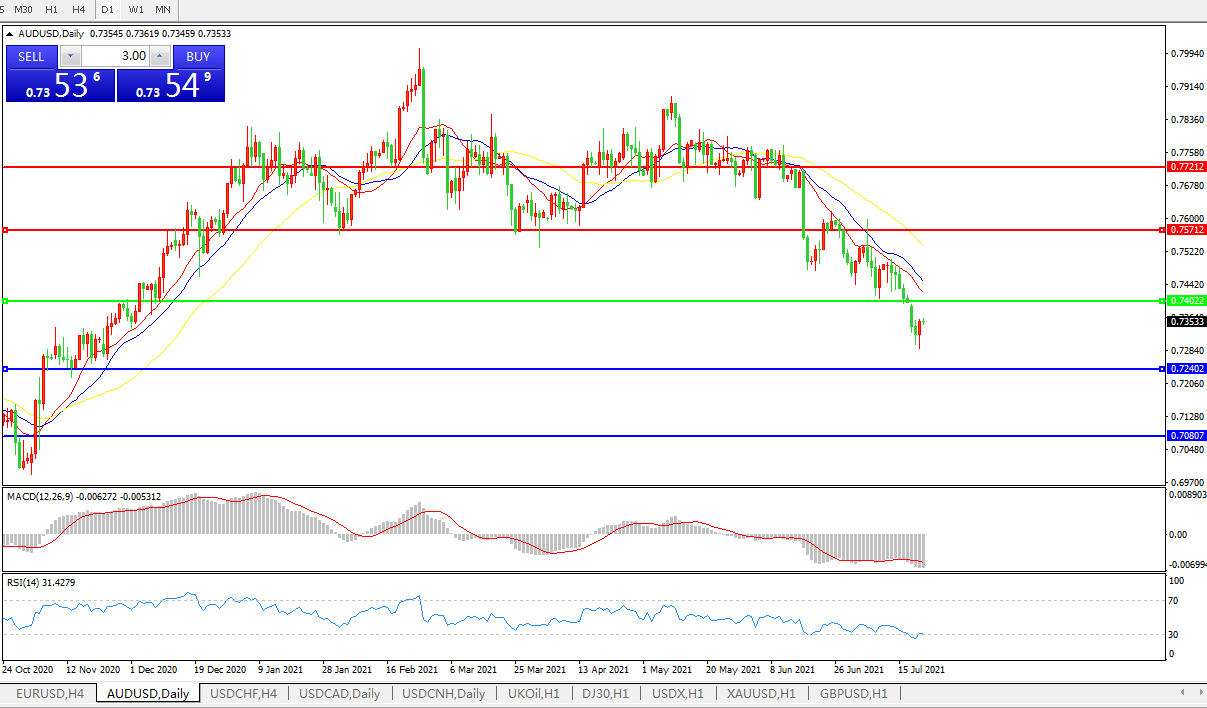 交易策略:0.7400下方看跌,目标0.7240、0.7080