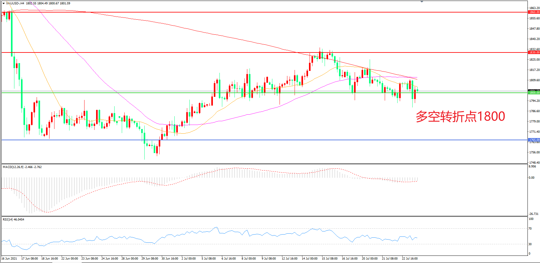 交易策略:  在1800.00之上看涨,目标1840.00        1870.00