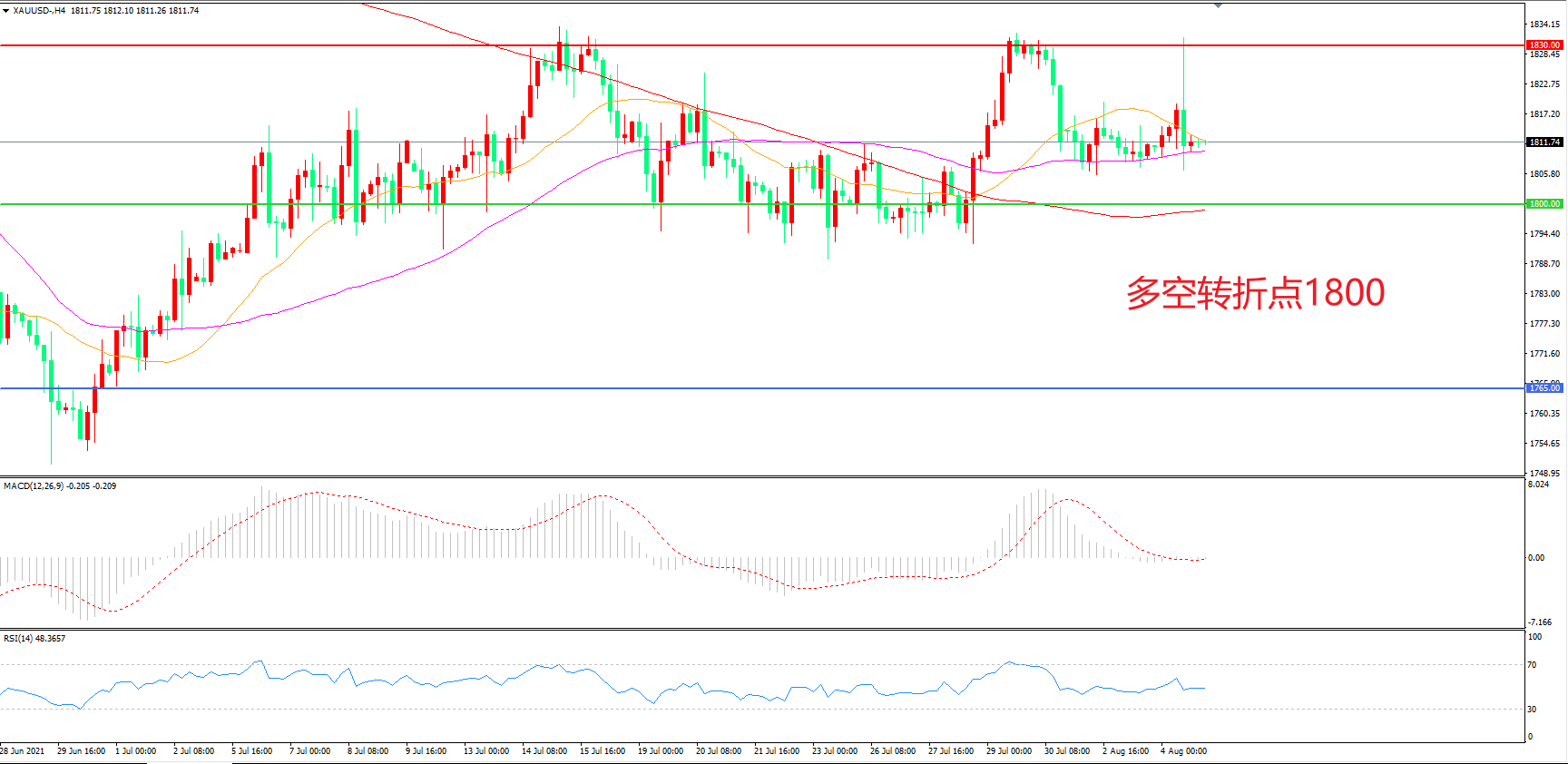 多空转折点:1800.00