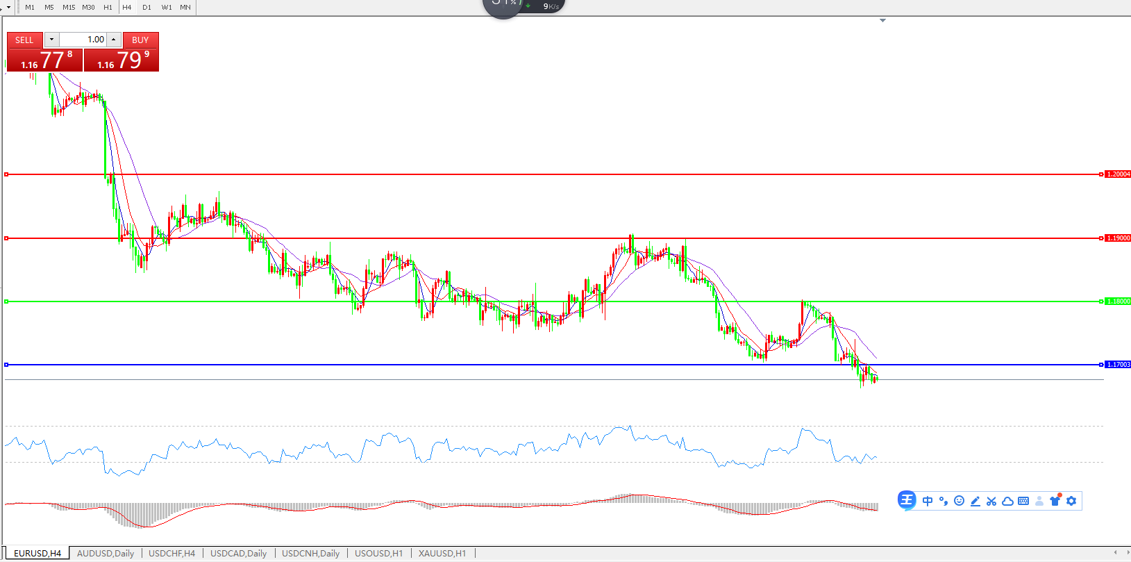 交易策略:1.1800下方看跌,目标1.1700、1.1600