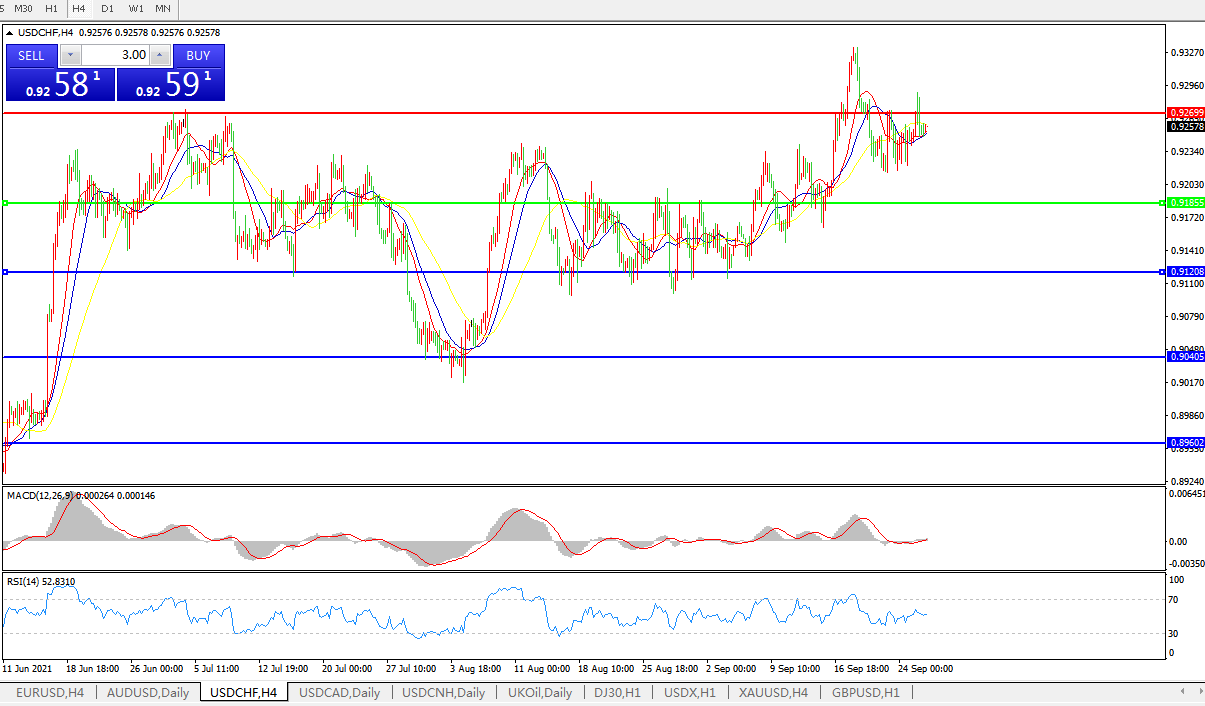 交易策略:0.9185上方看涨,目标0.9270、0.9370
