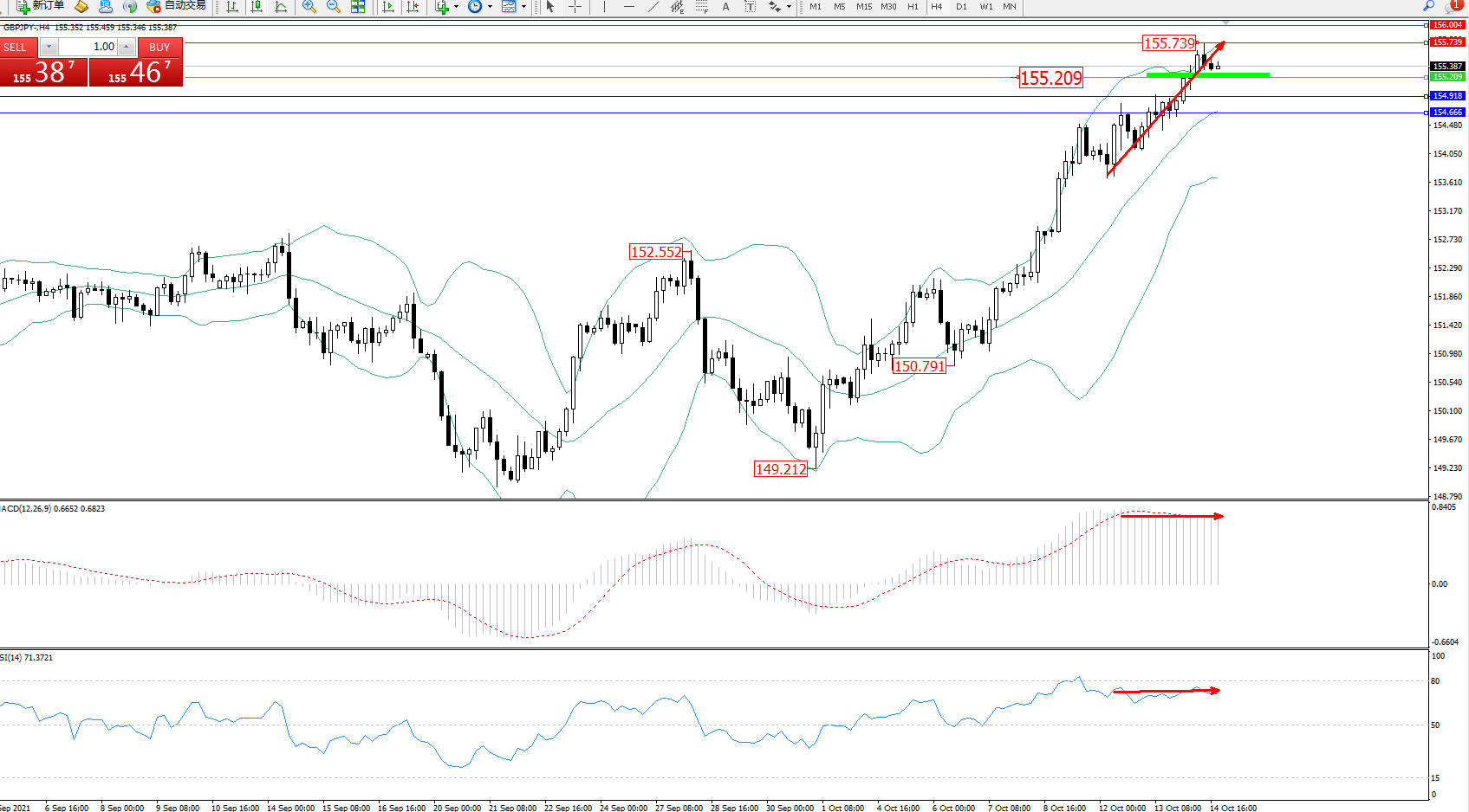 交易策略:155.209上方看涨,目标155.739、156.004