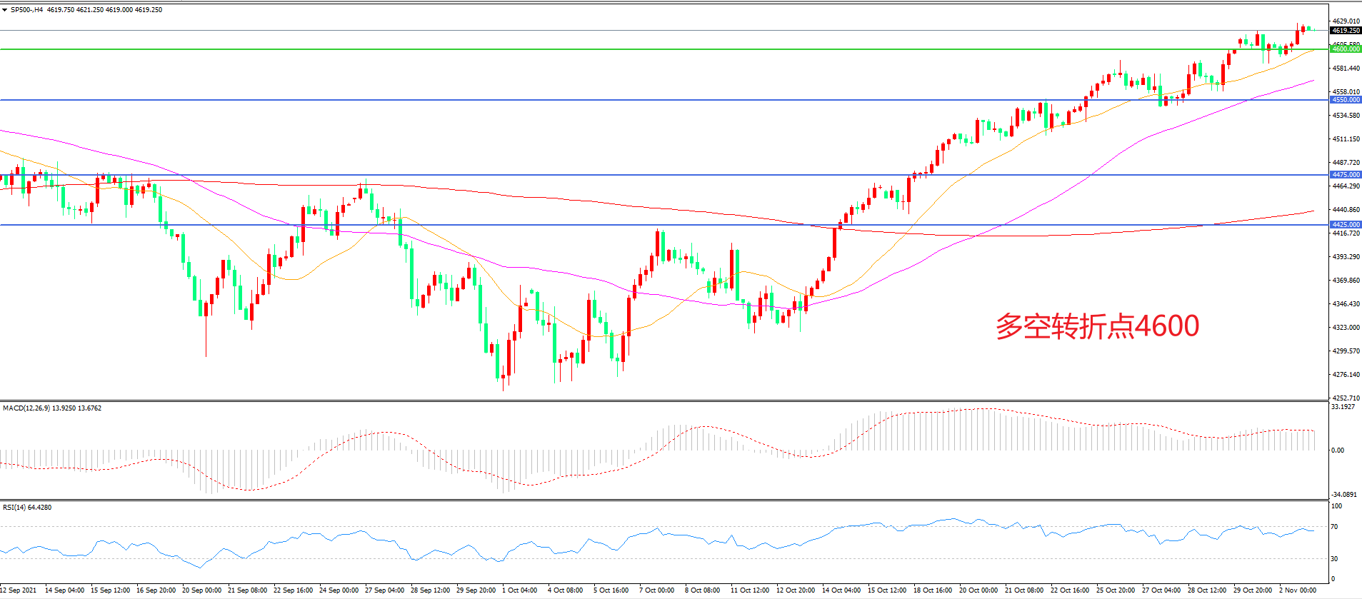 多空转折点:4600.00