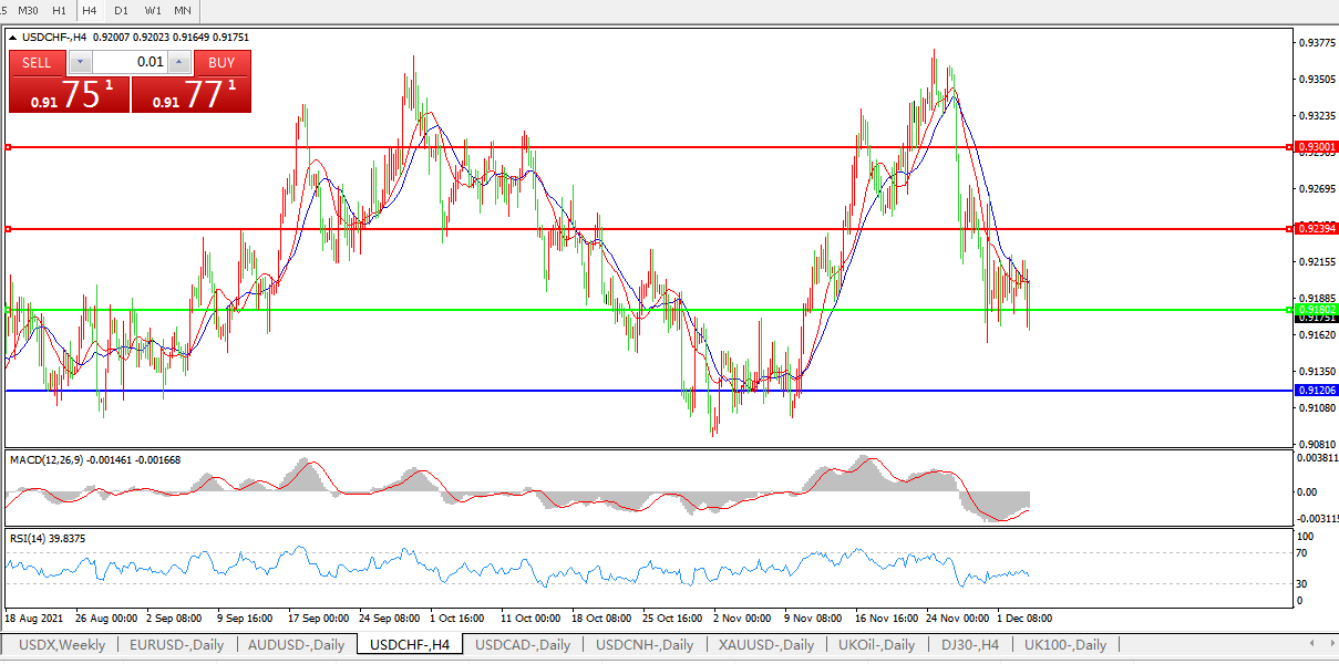 交易策略:0.9180下方看跌,目标0.9120、0.9040
