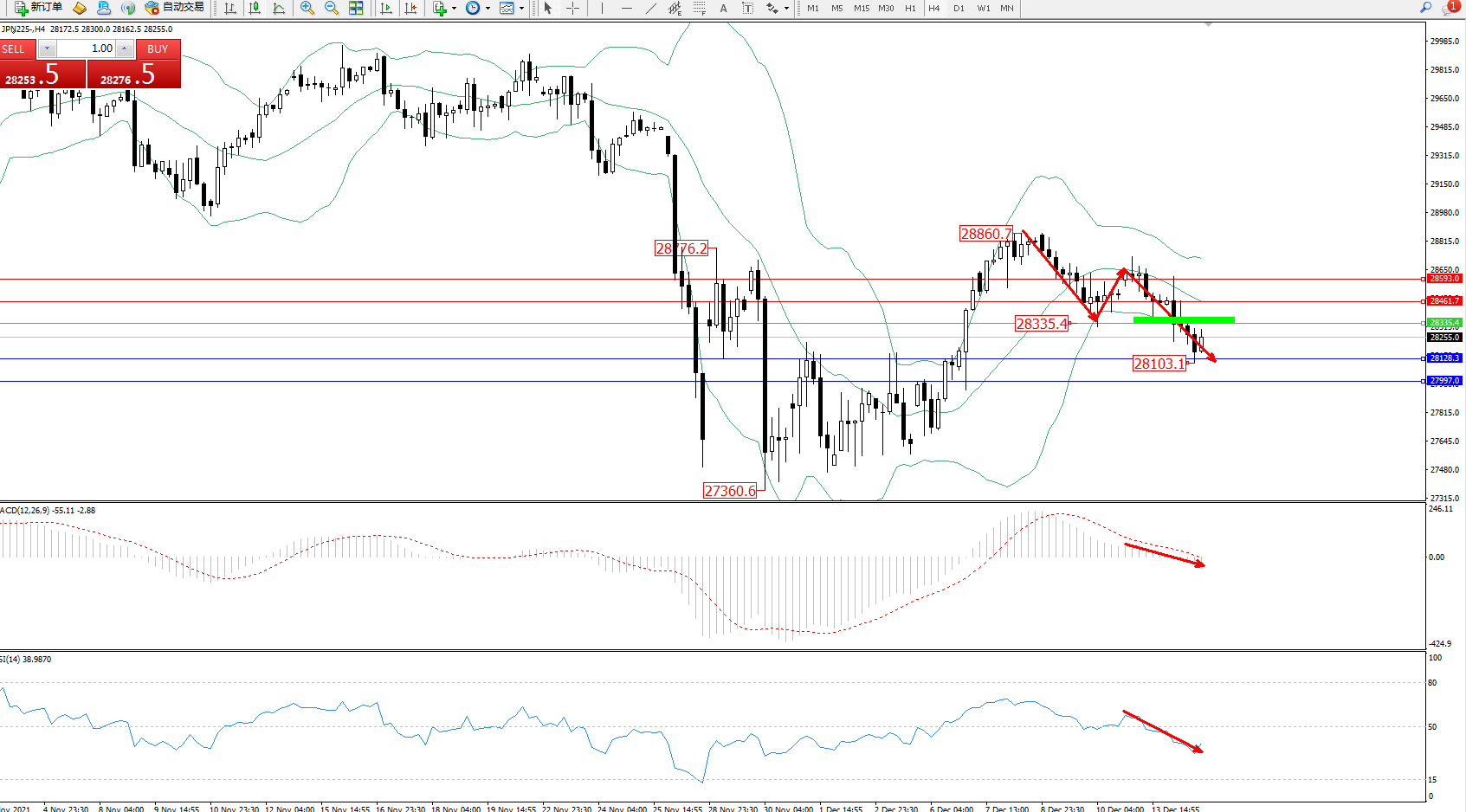 日经225指数12月14日(周二)收盘下跌221.49点,跌幅0.77%,报28419.00点。美联储和日本央行召开政策会议之前,日本股市一度跌超1%。日本首相岸田文雄表示,政府可能会考虑股票回购指导方针,这进一步打压了市场情绪。彭博社调查的44名分析师中,约61%的人预计,日本央行将在3月结束对日本企业的新冠援助,而91%的受访者表示,日本央行不会改变任何主要政策设定。“在FOMC会议召开之前,很难逢低买入日本股票。”野村策略师Hideyuki Ishiguro表示。"理由是日经225指数从约27500点的水平反弹非常迅速,在日经225指数期货遭遇抛售的推动下,该指数有可能再次回落。