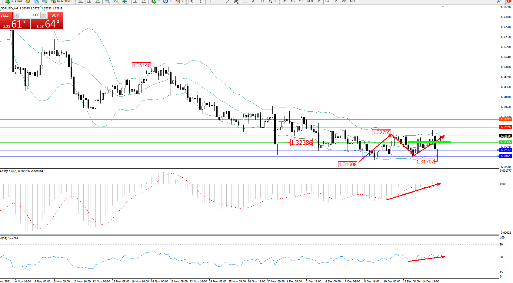 交易策略:1.32386上方看涨,目标1.32928、1.33209