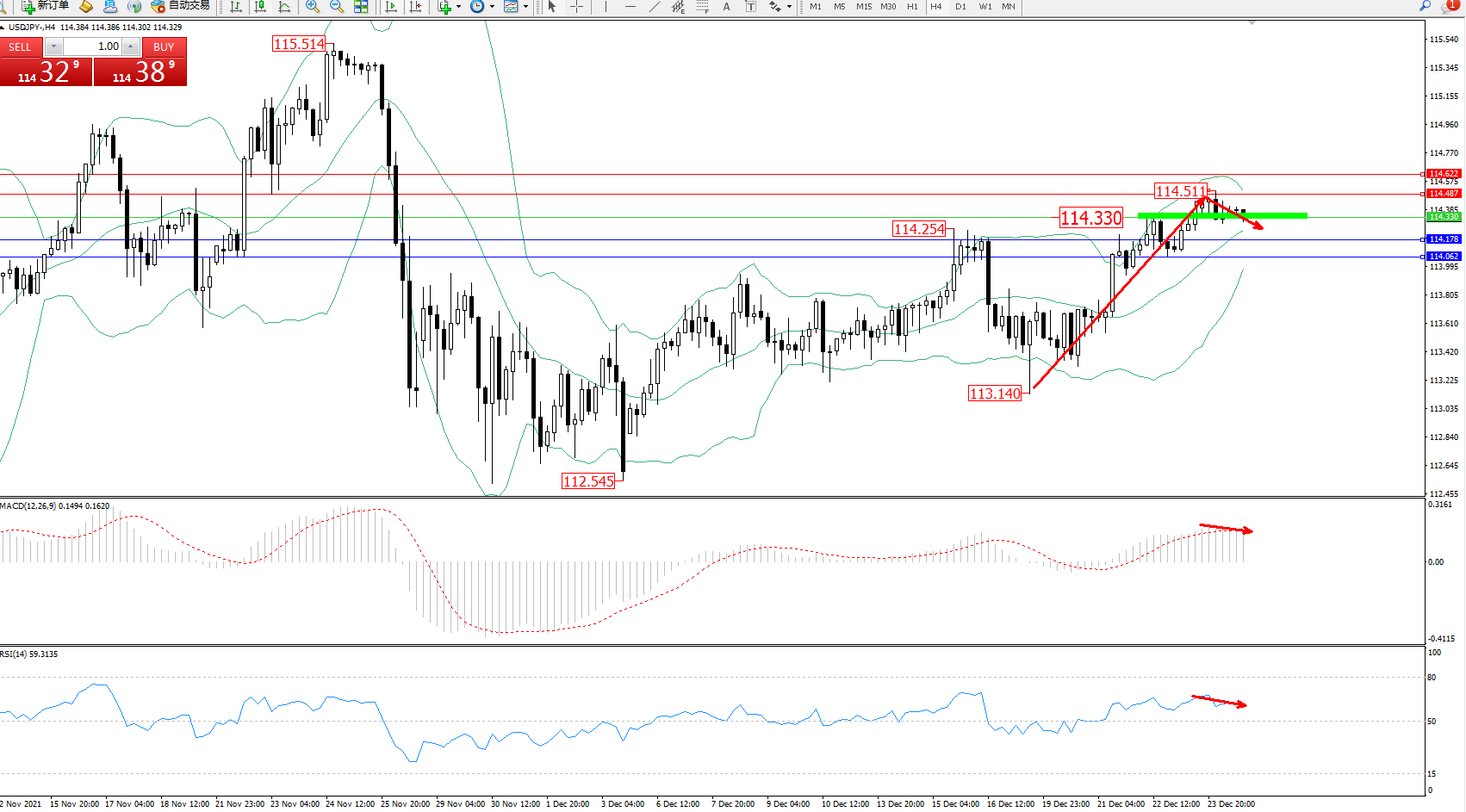 备选策略:114.330上方看涨,目标114.487、114.622