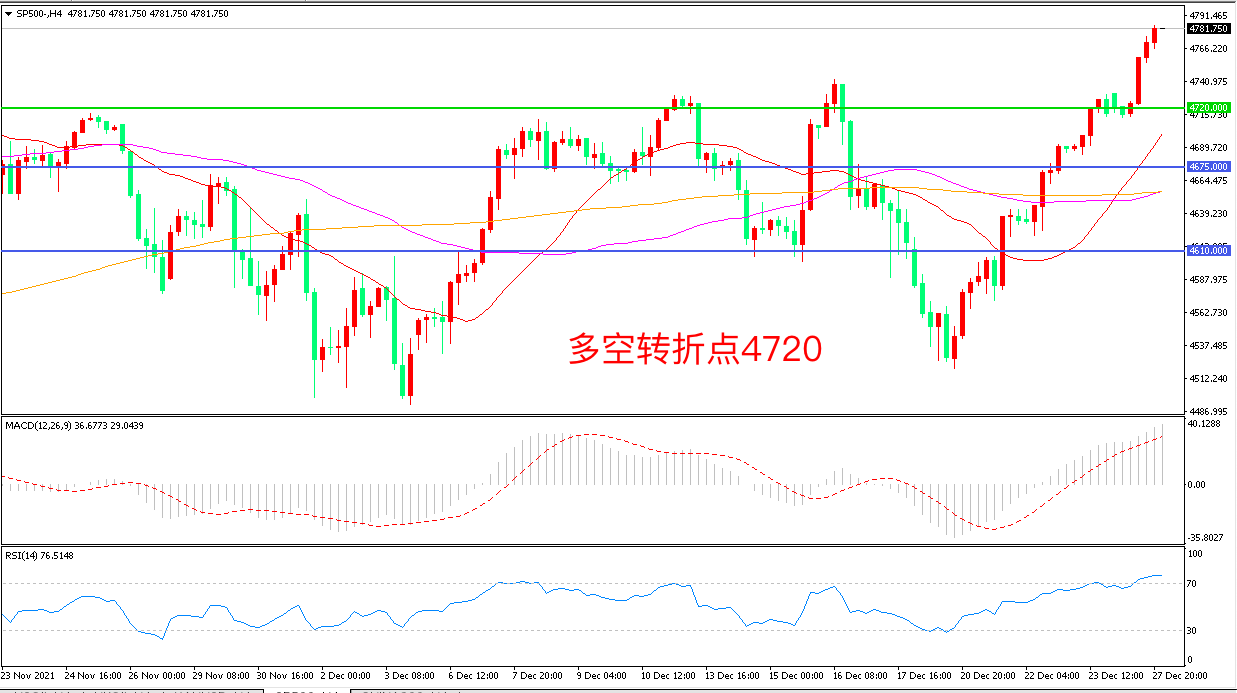 交易策略:在4720.00之上看涨,目标4800.00 4880.00