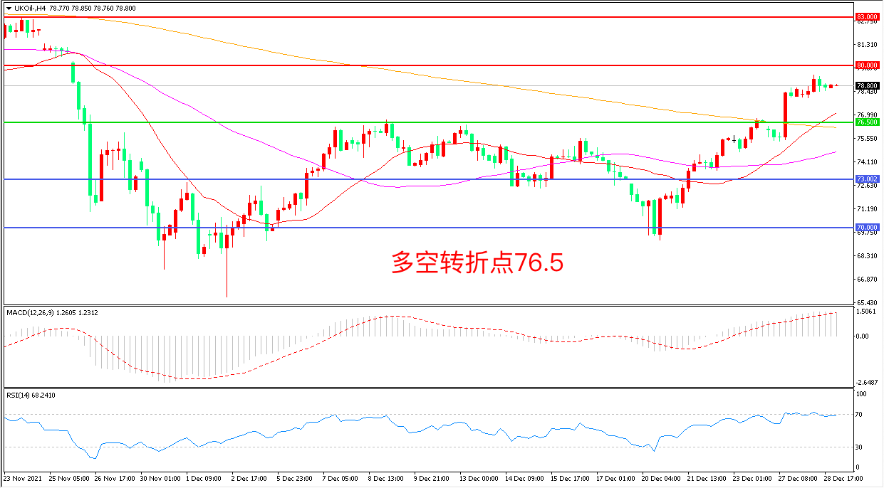 交易策略:在76.50之上看涨,目标80. 00 83.00