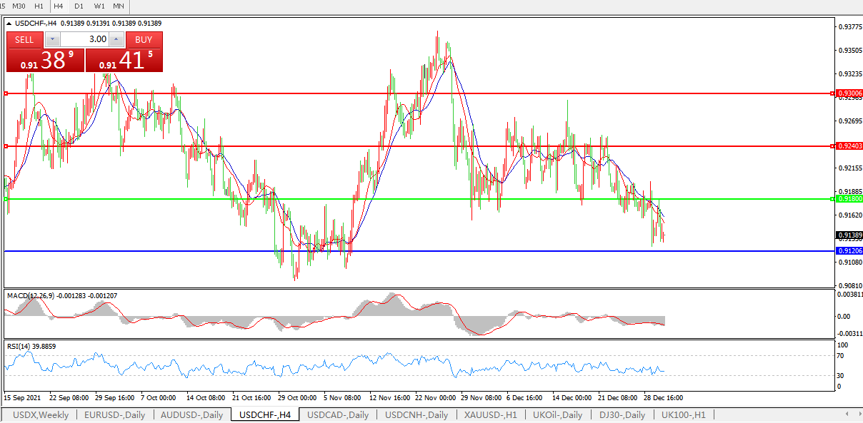 交易策略:0.9180下方看跌,目标0.9120、0.9040