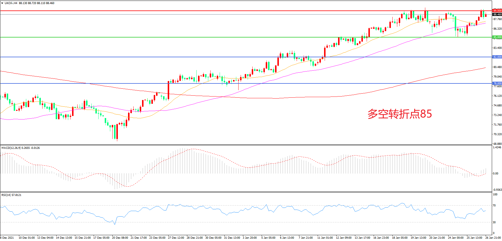 多空转折点:85.00