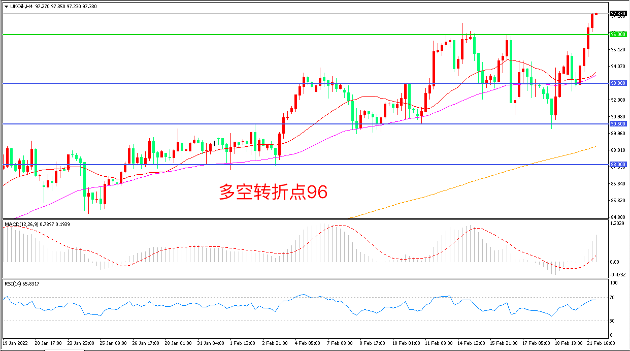 周一(2月21日),俄乌紧张局势继续升温,普京宣布承认顿涅茨克人民共和国和卢甘斯克人民共和国独立,并指示俄军方确保顿巴斯地区和平,俄乌局势升级推动油价再度反弹,布伦特原油大幅拉升,收报96.50美元/桶。与此同时,投资者也在关注重启伊朗2015年核协议的谈判进展,短期看油价延续强势概率较大。