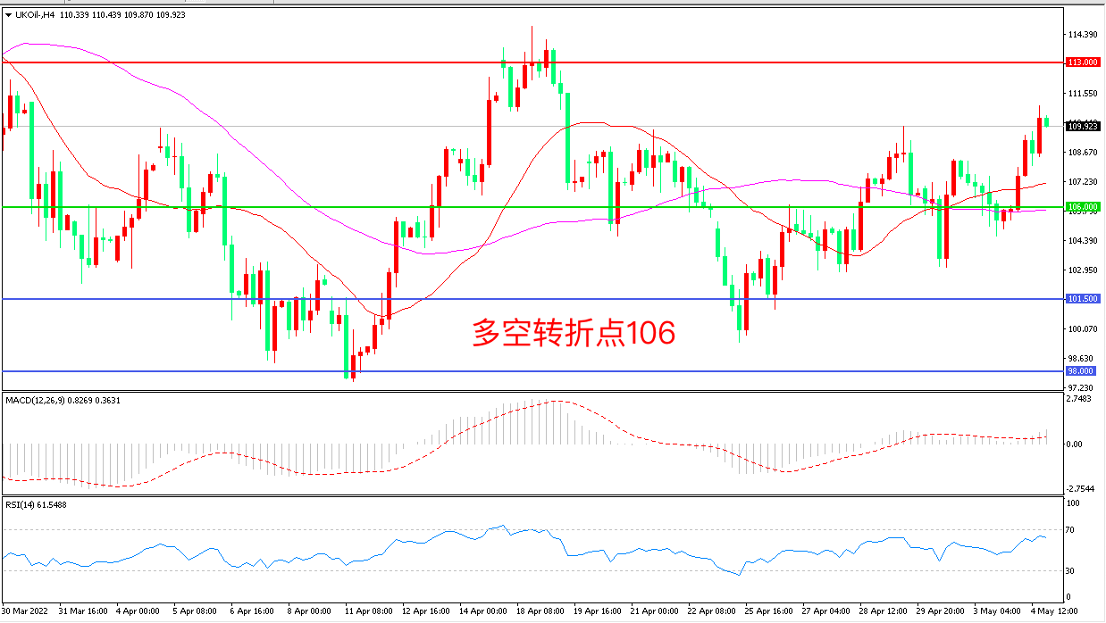 交易策略:在106.00之上看涨,目标113.00           120.00